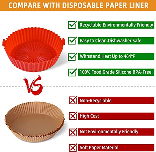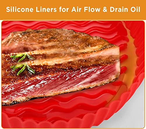 [100% Food-Grade Silicone Pot] – round air fryer liners are made of food-grade silicone, which is oil-proof & heat resistant, withstands temperatures up to 450°F. Won’t affect the taste of the food at all! The Soft silicone also makes it easy to hand wash.
