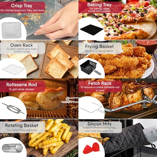 Accessories: The 1700W OTG comes with 8 additional accessories baking tray, oven rack, rotating basket, rotisserie rod, fetch rack, frying basket, crisp tray, and silicon mits along with a recipe book for your ultimate convenience. Healthy Cooking