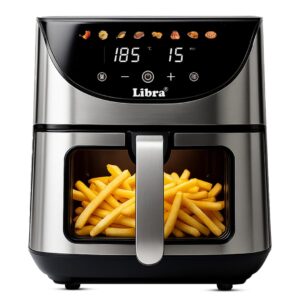 Libra 6.5 Liter Air Fryer Oven – 1740W Stainless Steel Air Fryer with 9-in-1 Digital Functions: Air Fry, Toast, Grill, Bake, Reheat & Keep Warm – Uses 90% Less Oil, Stainless Steel Interior