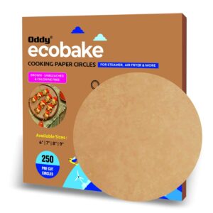 Oddy Ecobake Brown Cooking & Baking Paper Circles, 250 Unbleached & Chlorine Free Pre-Cut Rounds, Size 7 inch, Ideal for Baking Cakes, Best Suitable for Airfryer, Microwave, Oven & Steamer