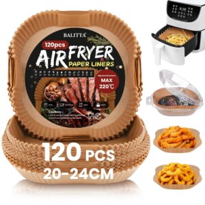 Pack of 120 Baking Paper for Hot Air Fryer, 20 cm Airfryer Baking Paper, Square, Non-Stick, Waterproof, Oil-proof, Disposable Air Fryer Paper, Parchment Paper Liner for Hot Air Fryer, Frying Pan,
