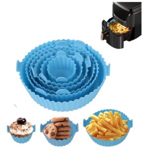NIYANETAIL 6-Pcs Reusable Non-Stick Air Fryer Accessories Set | Round Silicone Coating Pot & Basket | Airfryer Oven Accessories