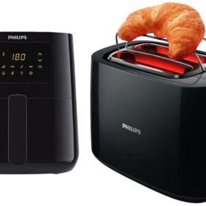 PHILIPS Digital Air Fryer HD9252/90 with Touch Panel, 7 Pre-set Menu, 1400W, 4.1 Liter, with Rapid Air Technology, Large & Daily Collection HD2583/90 600-Watt 2 in 1 Toaster and Grill (Black)