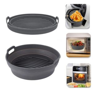 FEXME Air Fryer Liners Round Silicone Basket Baking Tray Pot with Ear Handles Nonstick Reusable Heat Resistant Cooking Oven Insert Accessories – Multicolor | 8 inch, Pack of 2