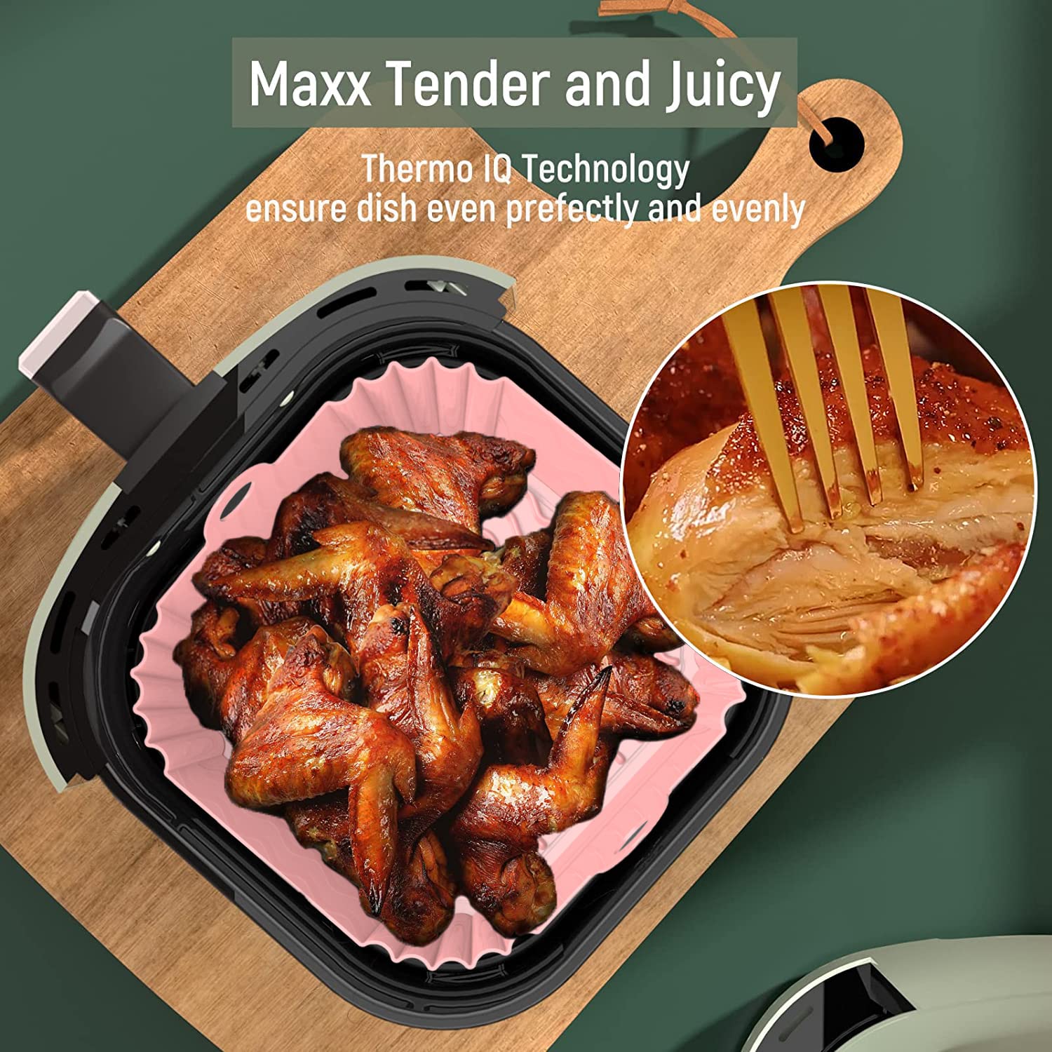 【AIR CIRCULATION & HEAT DISTRIBUTION】 Experience culinary perfection with our Square Air fryer Liners. Engineered for Even Heat Distribution, they ensure uniformly cooked meals without any hot spots. Featuring Enhanced Air Circulation Design, these Silicone Liners guarantee crispy textures while preserving moisture for juicier results. Say goodbye to uneven cooking and soggy dishes – our Thick Pot Liner Inserts deliver consistent, delicious outcomes every time, making mealtime a breeze.