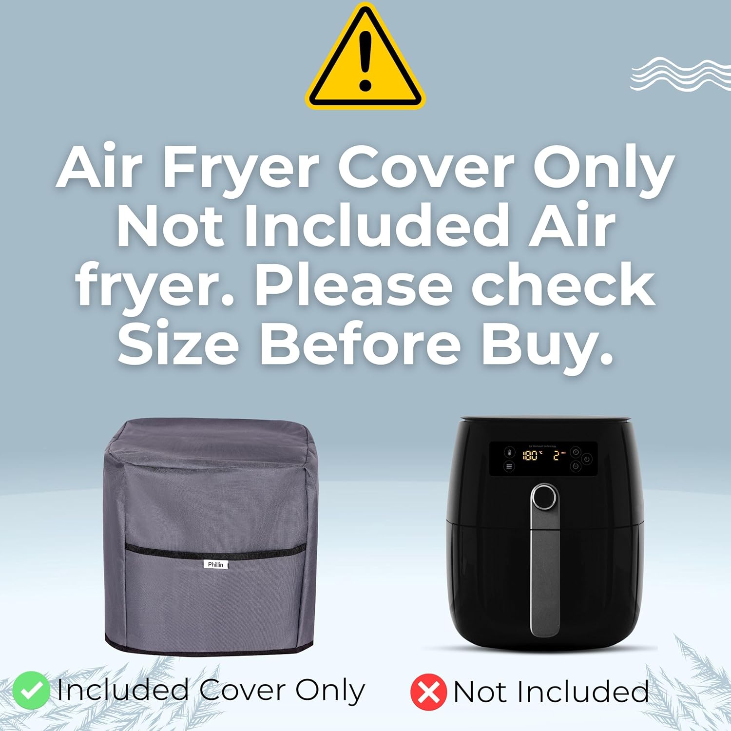 SUITABLE – Phillin air fryer covers for kitchen (L30 x W33 and H 39)cm of your air fryer. Prevent your Air Fryer from dust, Water, spills, scratches, high temperature, water, and other contaminants.