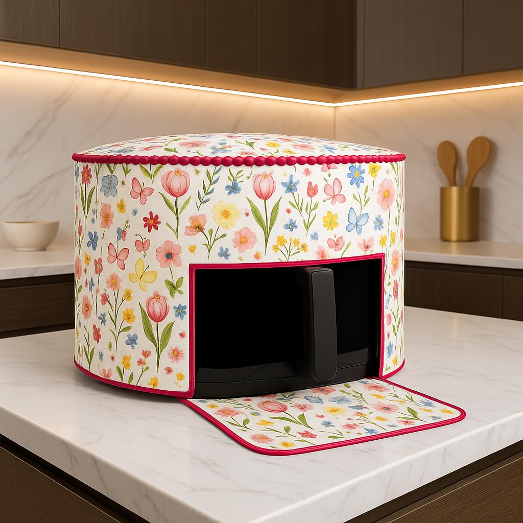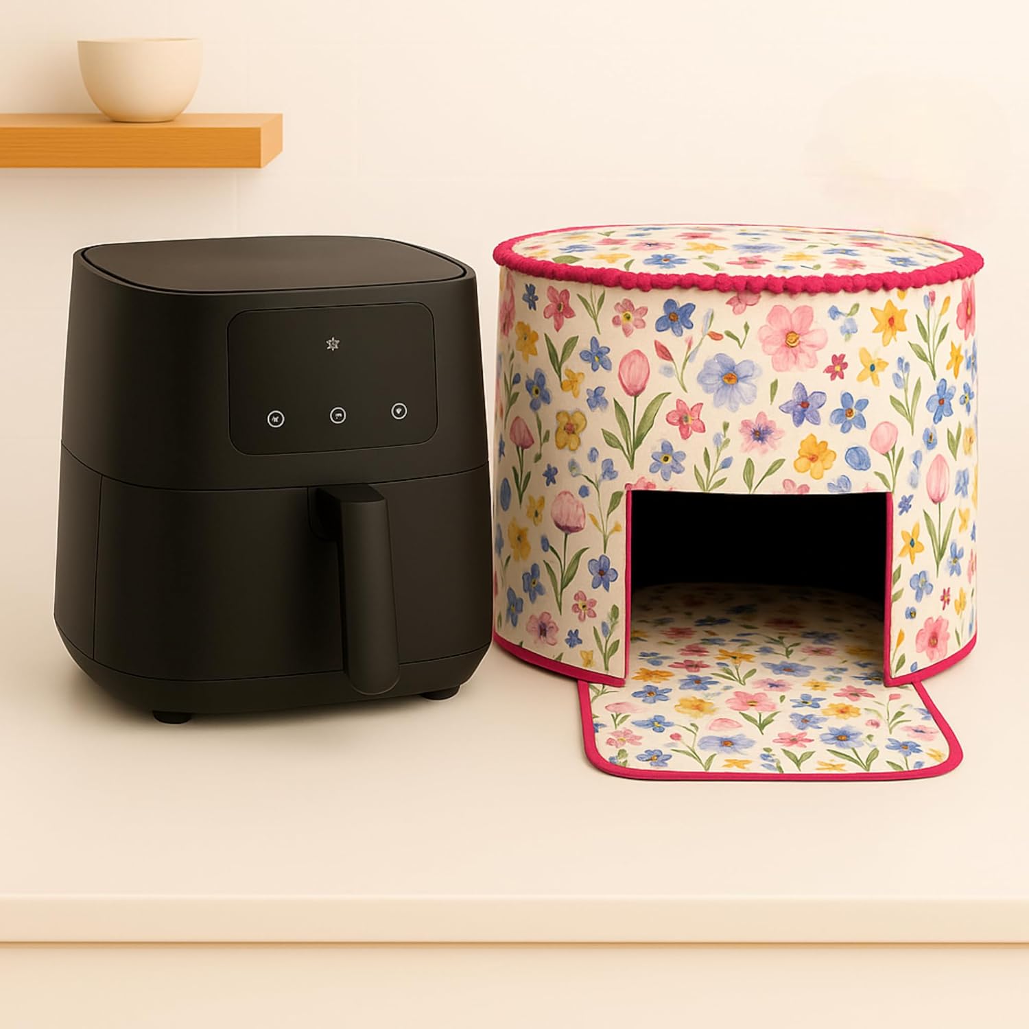 ✅ Protects Against Dust, Grease & Stains This mixer grinder cover offers all-around protection against dust, grease, stains, and daily fingerprints. A must-have for Indian homes and busy kitchens, it keeps your appliance spotless and reduces the need for frequent cleaning. Ideal for those searching mixer grinder dust cover, kitchen appliance cover, or protective decorative mixer cover for daily use. Add a bold statement to your kitchen while protecting your appliances with our Mixer Grinder Cover with Handle & Pink Pom Pom – Spring Floral Print. Specially designed to fit most standard-size mixer grinders, this round mixer grinder cover features a 10″ height and 9″ diameter, ensuring a snug fit for brands like Philips, Sujata, Preethi, Agaro, Bajaj, and more. Crafted from high GSM, thick and breathable fabric, this dustproof mixer grinder cover offers excellent protection from dust, stains, oil, and moisture.It ensures your appliance stays clean and scratch-free even in heavy-use kitchens. The Spring Floral printed mixer grinder cover adds a touch of ethnic elegance with a modern twist, while the bright pink pom pom lace around the top brings a splash of color. A fabric top handle makes this mixer grinder cover with handle extremely convenient to lift and use daily. This is more than just a stylish piece—it’s a functional kitchen appliance cover that’s also machine washable, making maintenance effortless. Simply toss it in the washing machine for easy, hygienic cleaning. Durable, breathable, and made for daily Indian kitchen use, it’s the perfect blend of form and function. Whether you’re looking for a mixer grinder cover for Preethi, a mixer cover for Philips, or a mixer grinder cover for Sujata, this versatile piece fits beautifully. Ideal for gifting or personal use, it’s a must-have for anyone browsing mixer grinder dust cover, decorative appliance covers, or designer kitchen cover