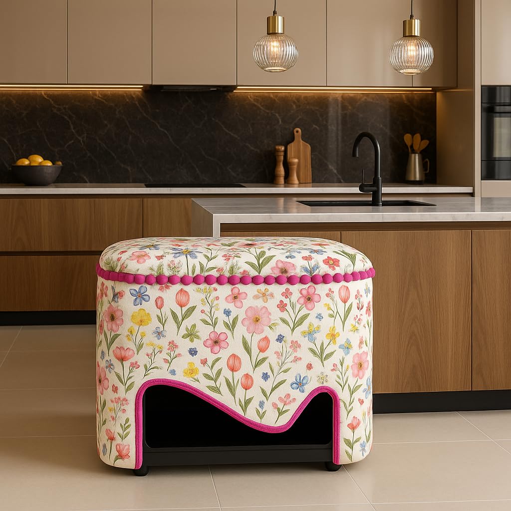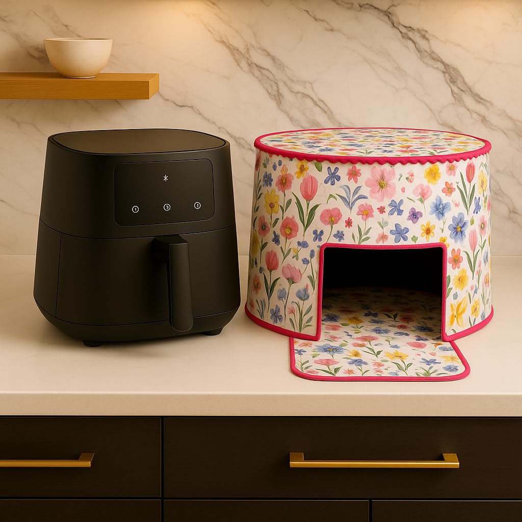 3️⃣ Designer Kitchen Décor in Floral Print Add a chic ethnic touch to your kitchen with this printed mixer grinder cover in a stylish Floral pattern. The hot pink pom pom trim adds feminine flair, making it a decorative appliance cover that doubles as kitchen decor. Ideal for buyers searching designer kitchen cover, decorative mixer cover, printed mixer grinder dust cover, or mixer grinder fabric cover with unique design appeal.