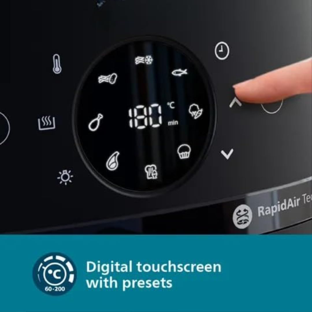 Preset menus for 12 different ways of cooking – Fry, bake, grill, roast and more. Easily adjust time and temperature — including reheating, defrosting and dehydrating