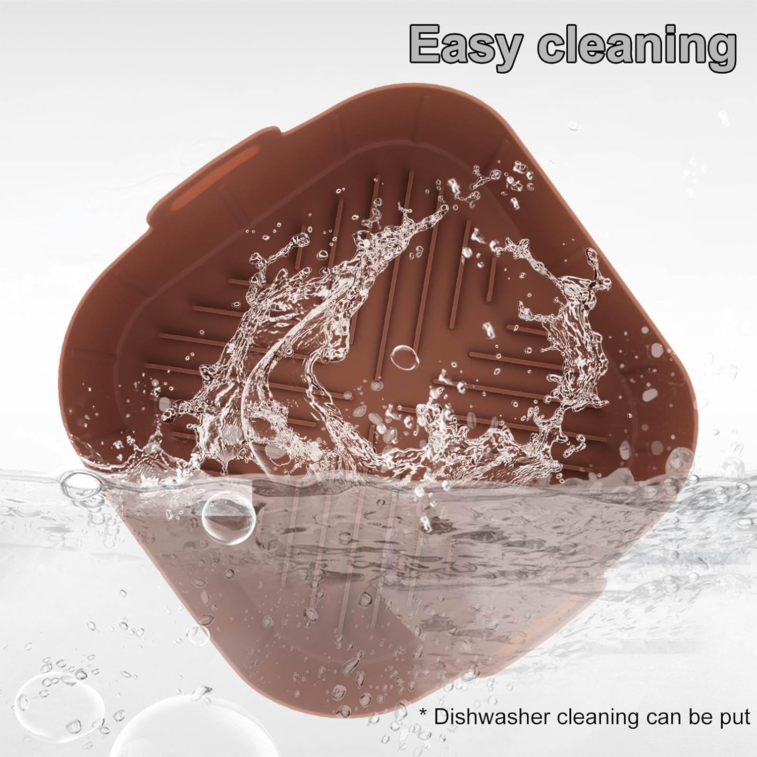 Air fryer silicone pots easy to clean, waterproof & dishwasher safe. Just use warm water and soap, it will be clean in seconds. Non stick silicone pot can keep the air fryer tidy, keep your air fryer away from food residues and grease, and enhance the life span of your air fryer basket.