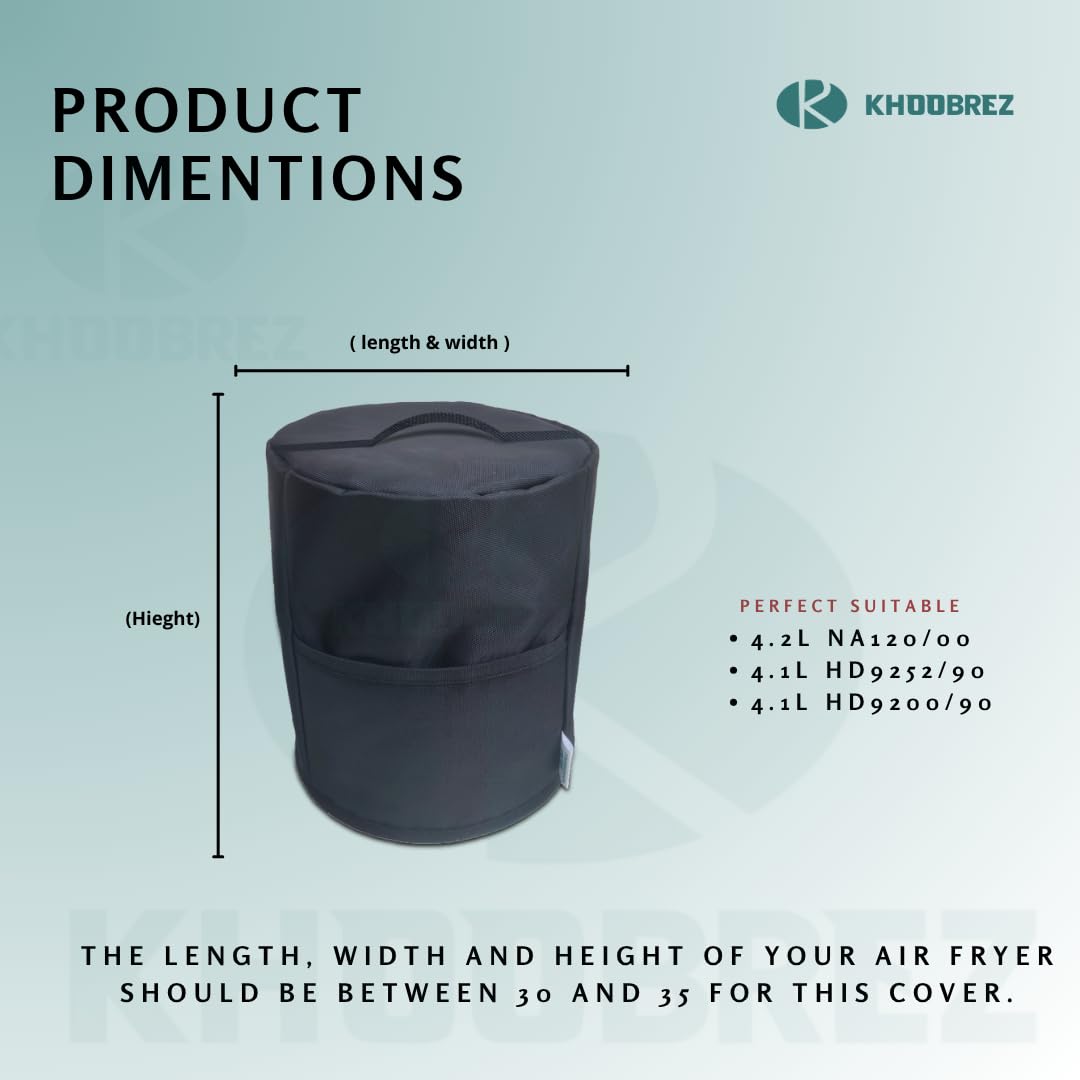 Protect Your Air Fryer in Style! KHOOBREZ Air Fryer Cover is designed to keep your appliance clean, dust-free, and always ready to use. Made from premium quality waterproof fabric, it protects your air fryer from dust, grease, stains, and scratches, while adding a modern touch to your kitchen. Lightweight, durable, and foldable, this cover is easy to store when not in use. Strong stitching and high-grade material ensure long-lasting protection for your appliance, making it a must-have accessory for every kitchen. Key Features 🛡 Complete Protection – Shields your air fryer from dust, grease, stains, and scratches. 💧 Waterproof & Washable – Made of high-quality fabric that is easy to clean and maintain. 🎨 Elegant & Modern Look – Enhances the appearance of your kitchen with a stylish design. 📏 Perfect Fit – Suitable for most major Air Fryer brands and models. 🧳 Easy to Store – Lightweight and foldable design for convenient storage. 🧵 Durable Stitching – Premium build for long-lasting use.