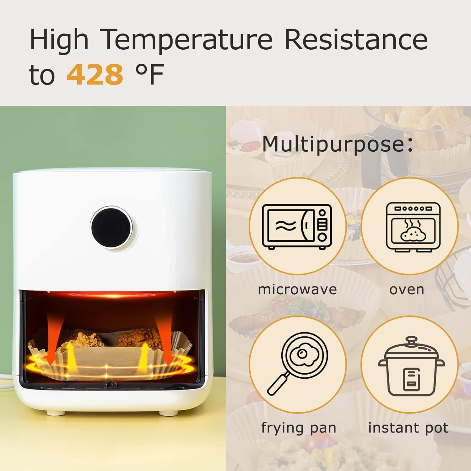 🔄 Universal Fit – 8-inch round design fits most 5-8QT air fryers, including brands like Ninja, Cosori, Philips, and more. ✅ Safe & Unbleached – Made from food-grade parchment paper, free of bleach and harmful chemicals, ensuring safe cooking.