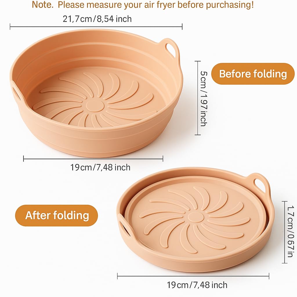 Discover the perfect alternative to disposable parchment paper with our foldable, food-safe, non-stick silicone liners. Designed to fit various air fryer models, microwaves, and steaming trays, these liners provide effortless cleanup and exceptional heat resistance, ensuring your food remains healthy and crisp. Reusable and easy to clean, they fold flat for convenient storage, making them an essential kitchen accessory for frequent air fryer users.