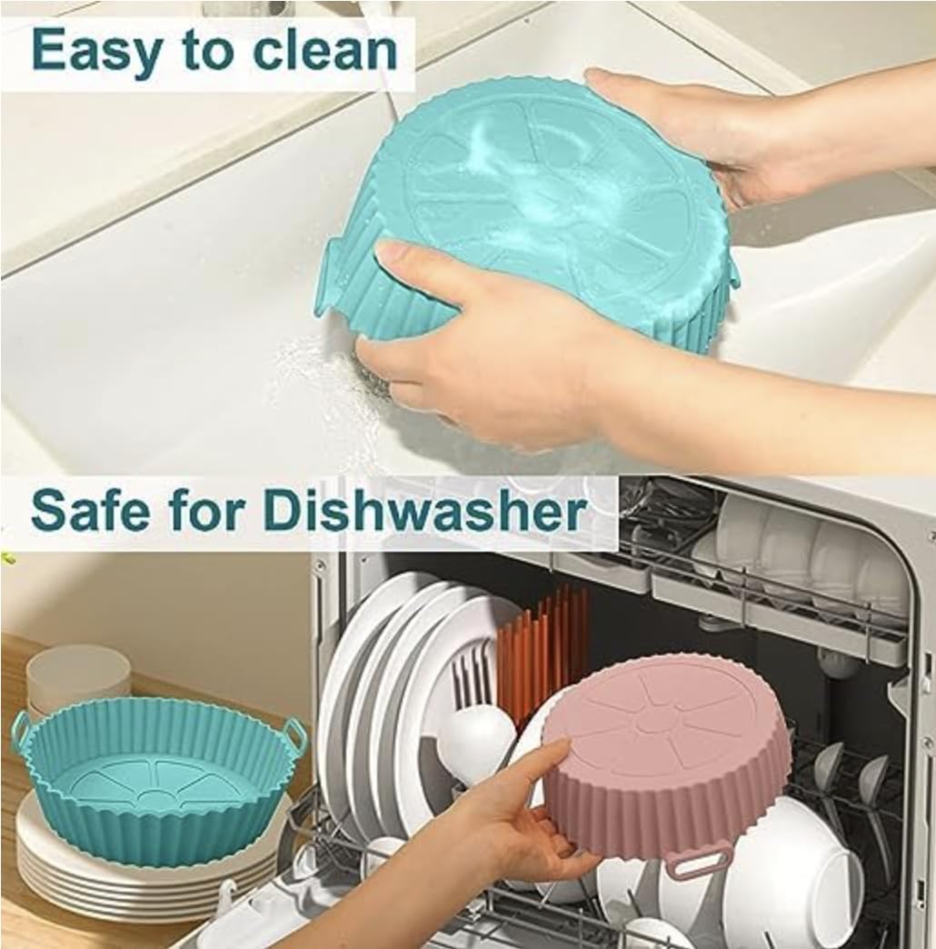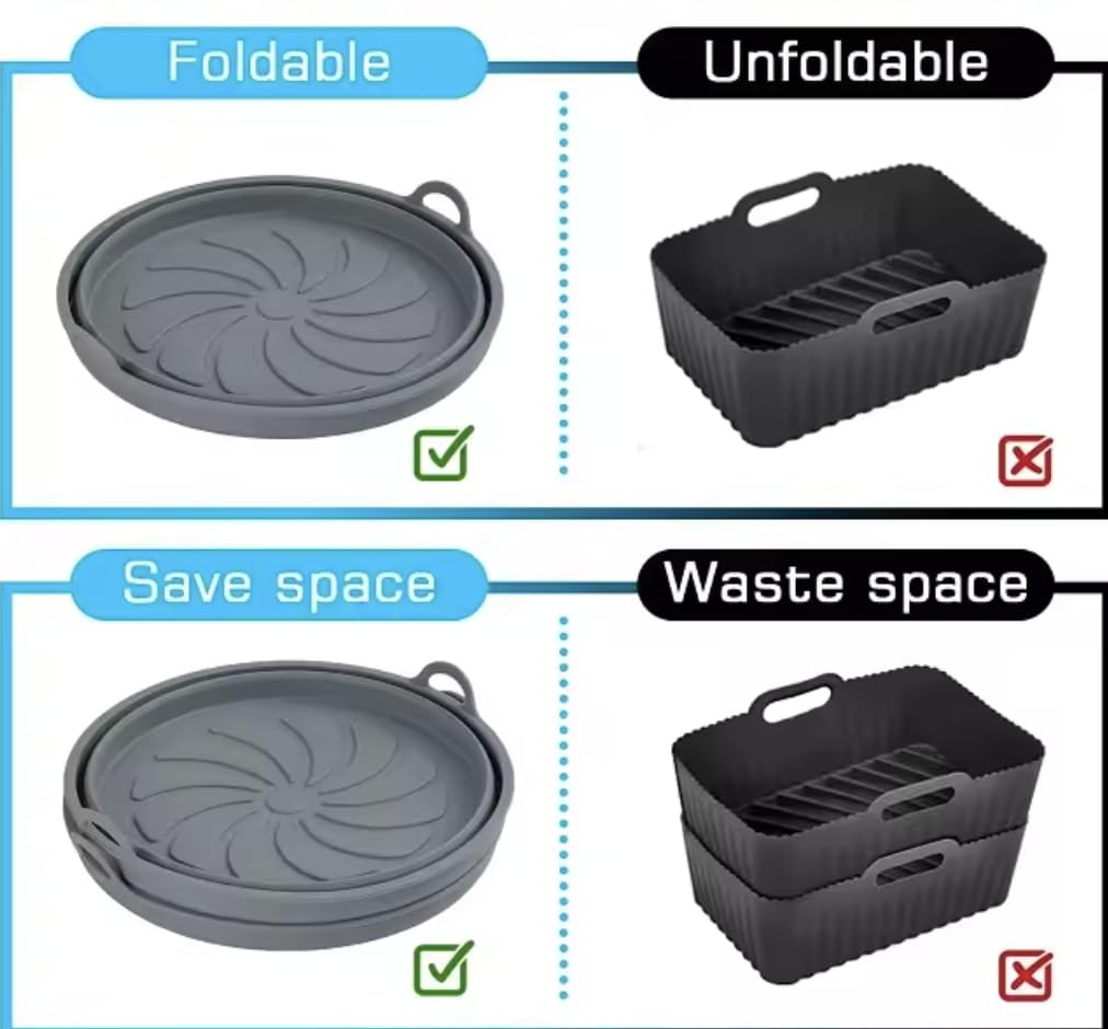 Simplify your cooking experience with these non-stick, foldable silicone liners for air fryers. Made from high-quality, food-grade silicone, they resist heat and are safe for repeated use. Perfect for microwaves, air fryers, or steaming, these liners prevent sticking, reducing the need for added oils or sprays. Enjoy healthier cooking with less mess, and fold them easily for compact storage after each use.