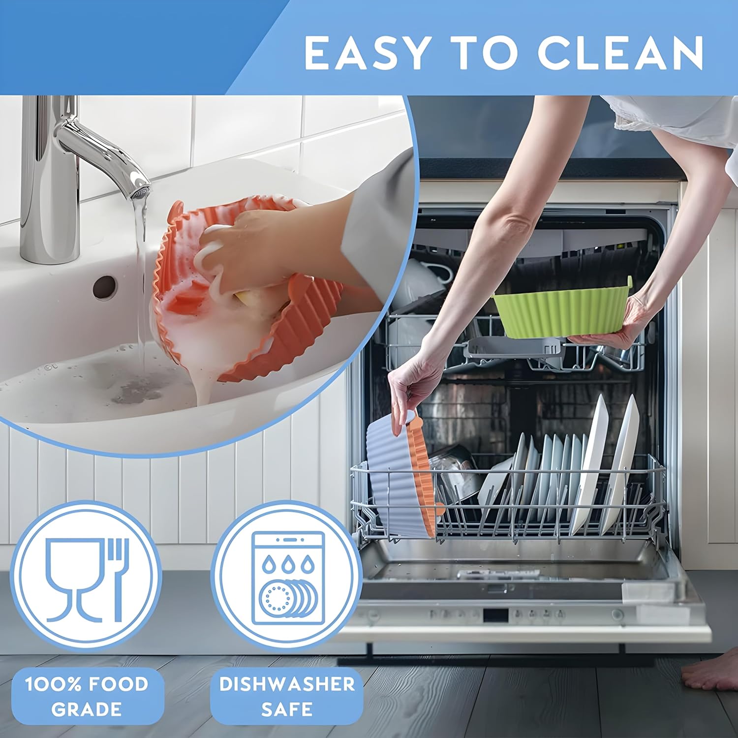 ✅ [Easy to Clean & Non-Stick] – CoolCold Silicone air fryer liners are totally dishwasher safe, help you to save your time & energy after cooking. The 1.5 times heightened edge can protect the side of fryers and prevent food from sticking to it. No more greasy mess on the air fryer basket and preserves the integrity and beauty of your food.