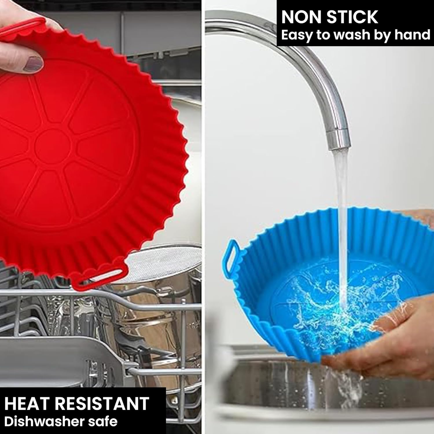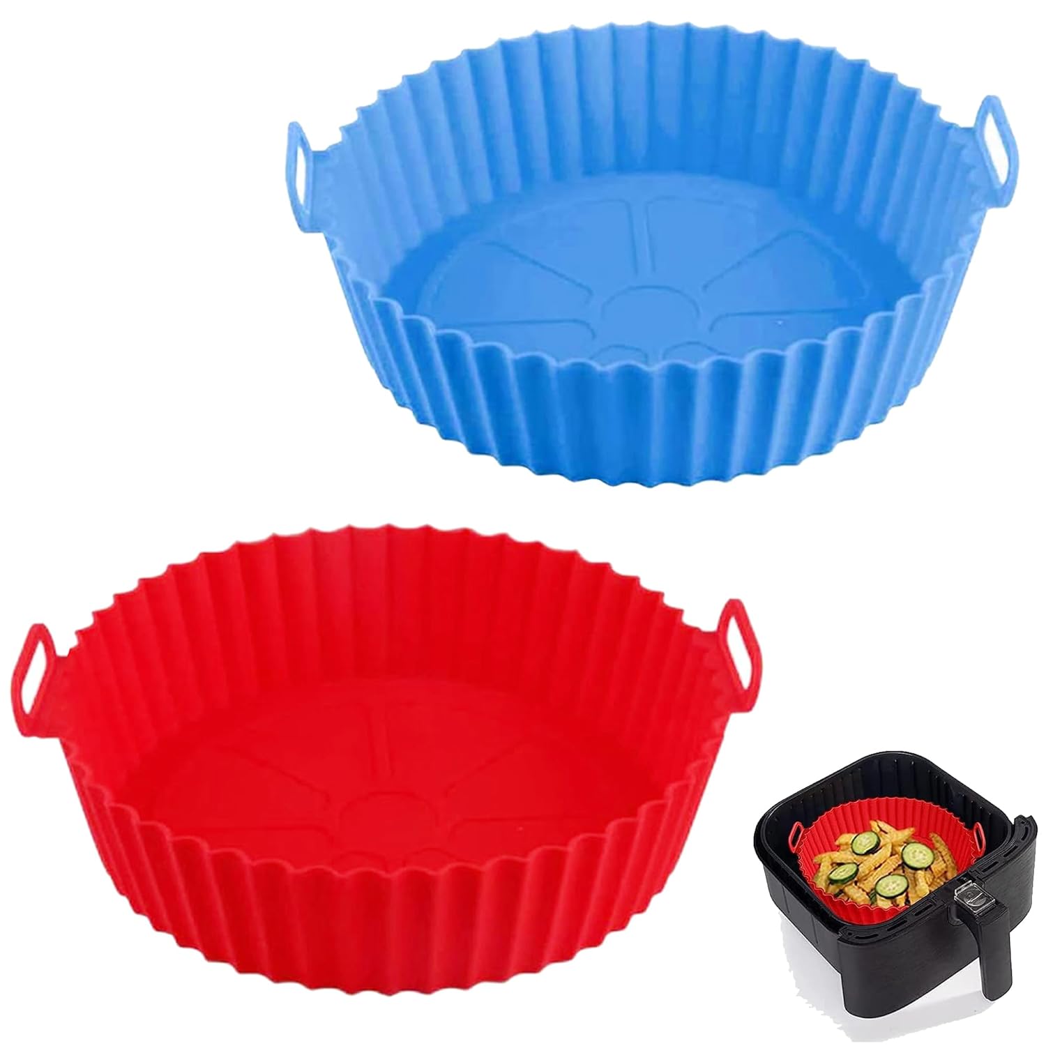 [Eco-Friendly and Content]: The silicone mould can be used repeatedly, eliminating the need for disposable liners and contributing to a sustainable cooking experience. These air fryer silicone liners consist of 1*Red and 1*Blue colour tray(2 Pc), It also help protect your appliance, making it the perfect gift for anyone who loves cooking or needs air fryer utensils, airfryer accessories items, or a silicone bowl for air fryer.