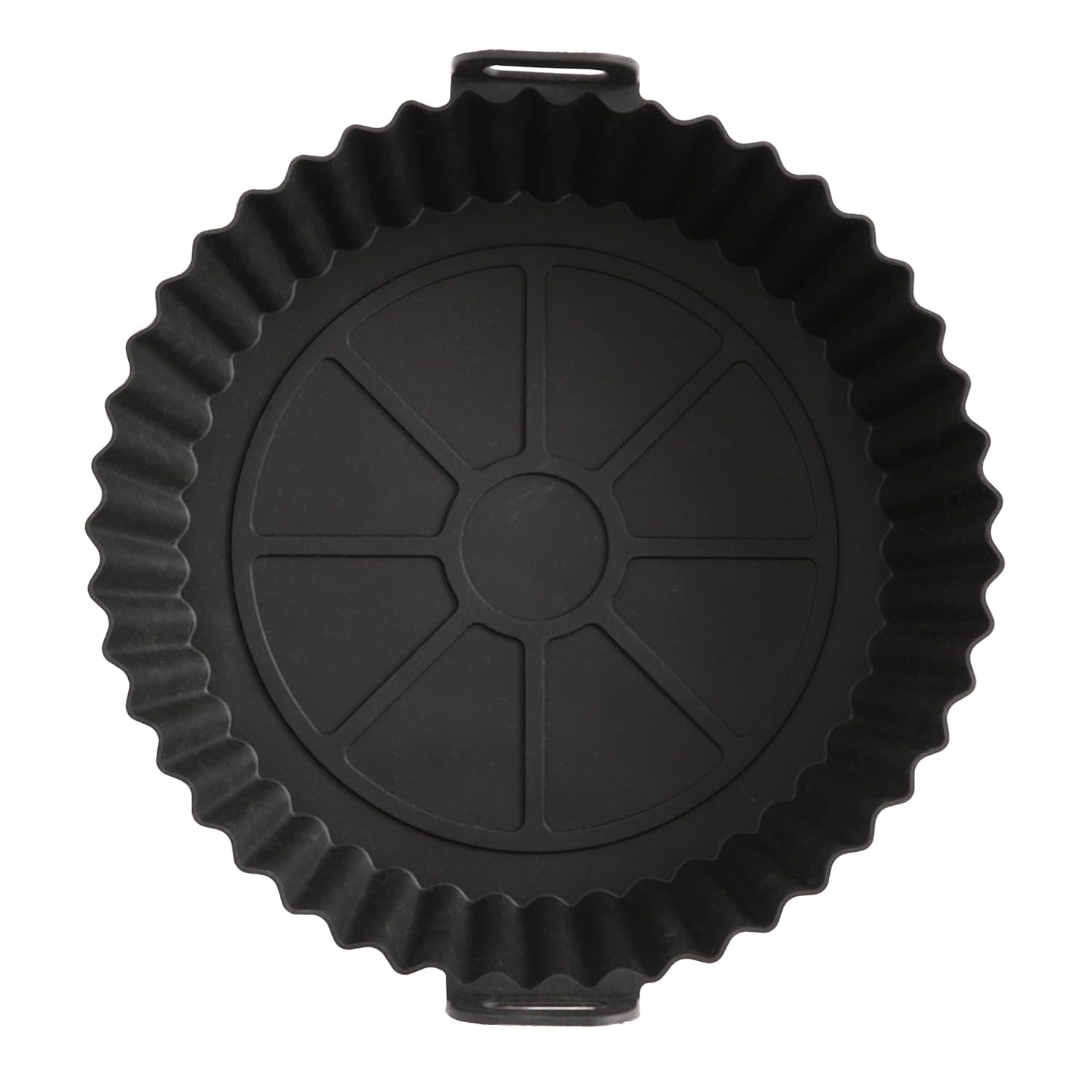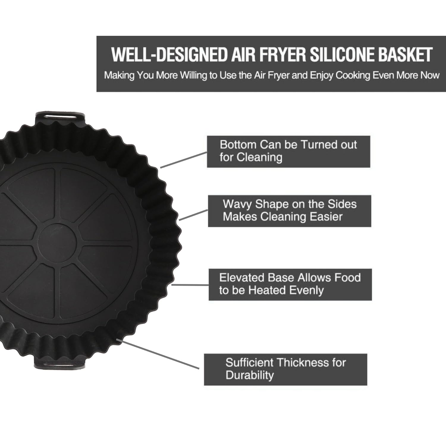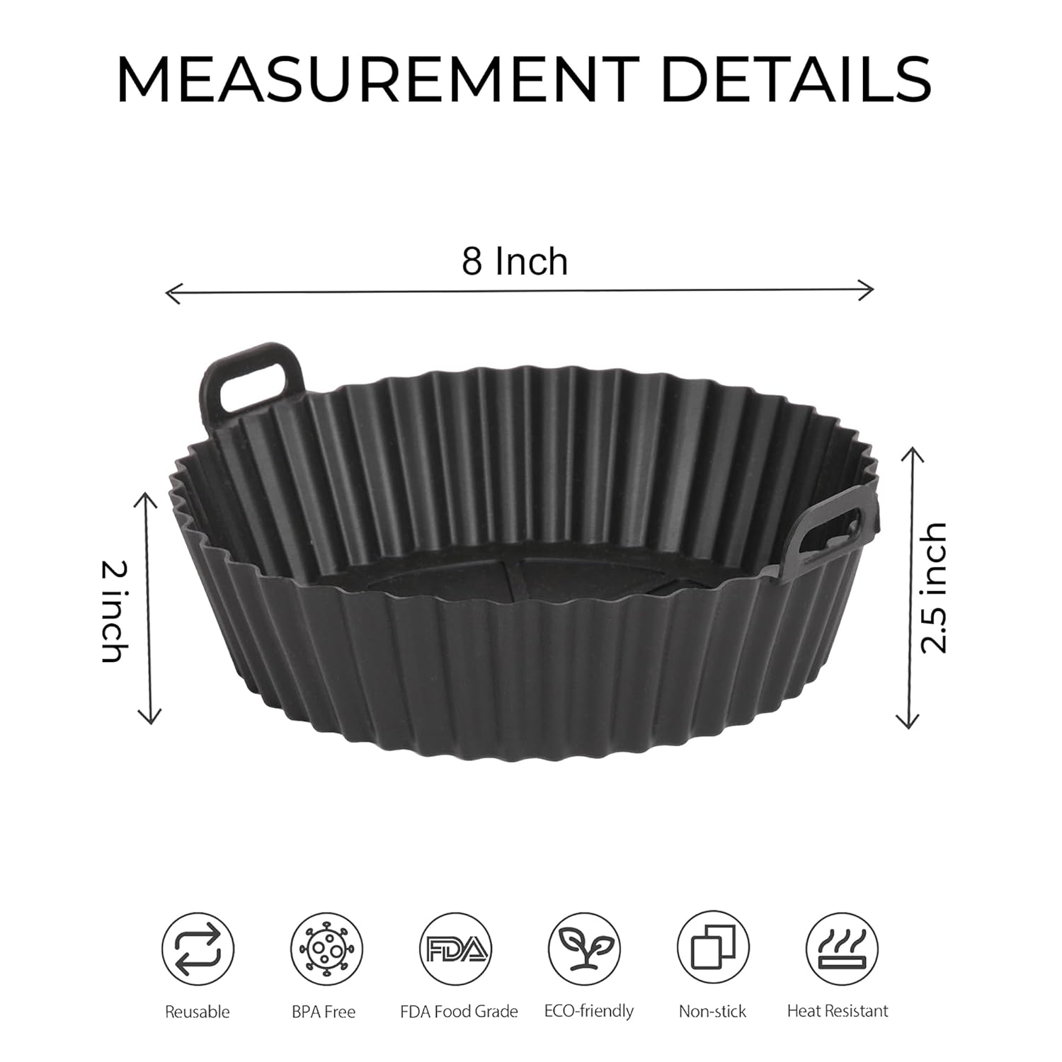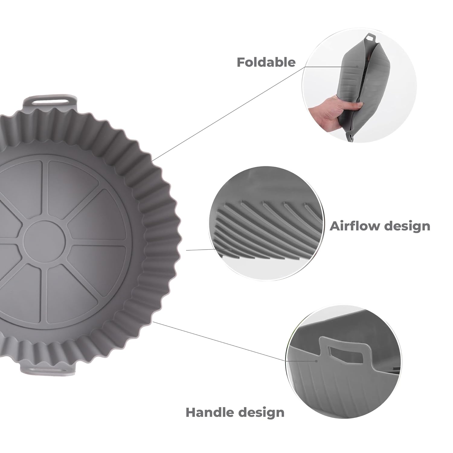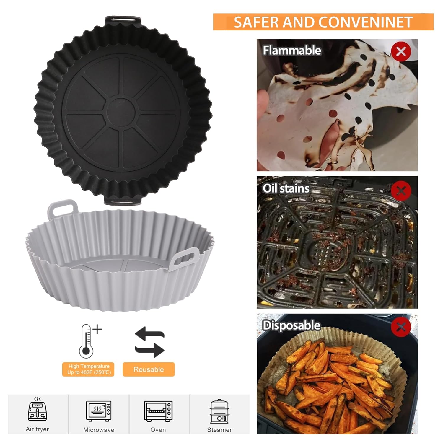 Home Kitchen & Home Appliances Kitchen Appliances Deep Fryers Cutting Edge Essentials Silicone Air Fryer Liners – Round Nonstick Baking Basket Tray with Ear Handles, Reusable & Heat Resistant Cooking Oven Insert Accessories – Pack of 2 (Black & Grey)