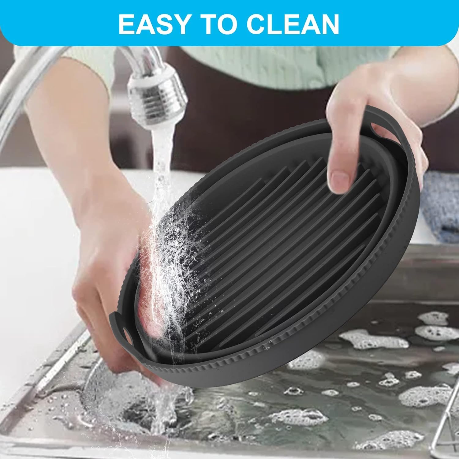 FiABLE Premium Silicone Air Fryer Liner is made of FDA Certified, food-grade Pure silicone that is safe, reusable, non-sticky, non-toxic, and free of BPA. It is highly heat-resistant and capable of withstanding temperatures up to 230°C and as low as -40°C.