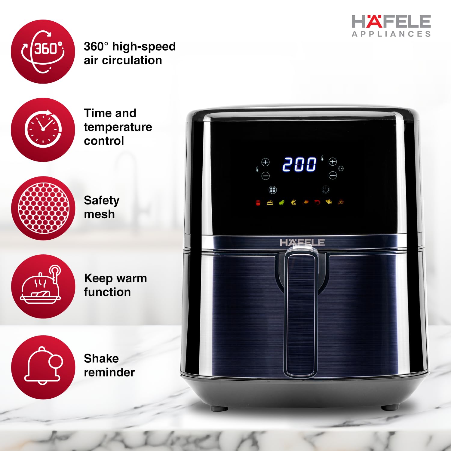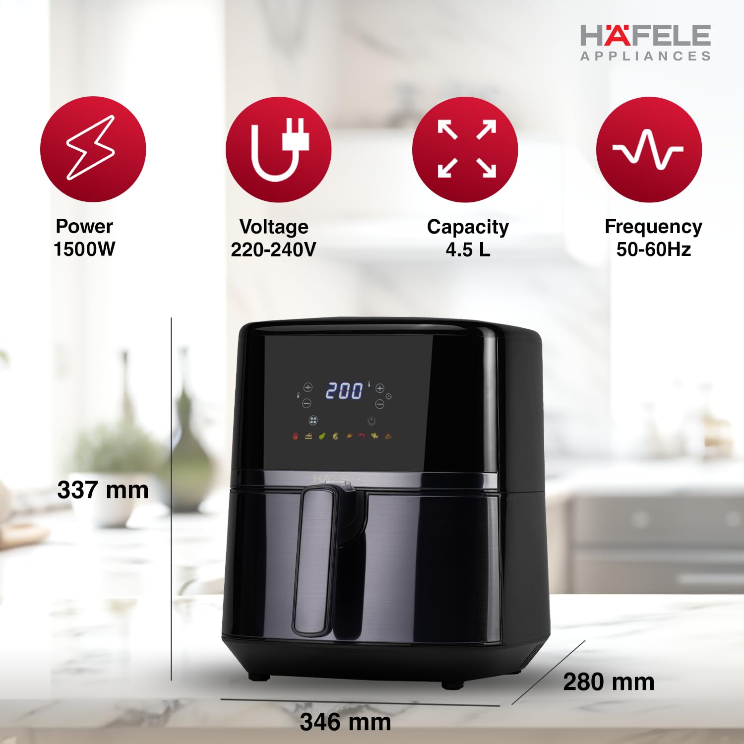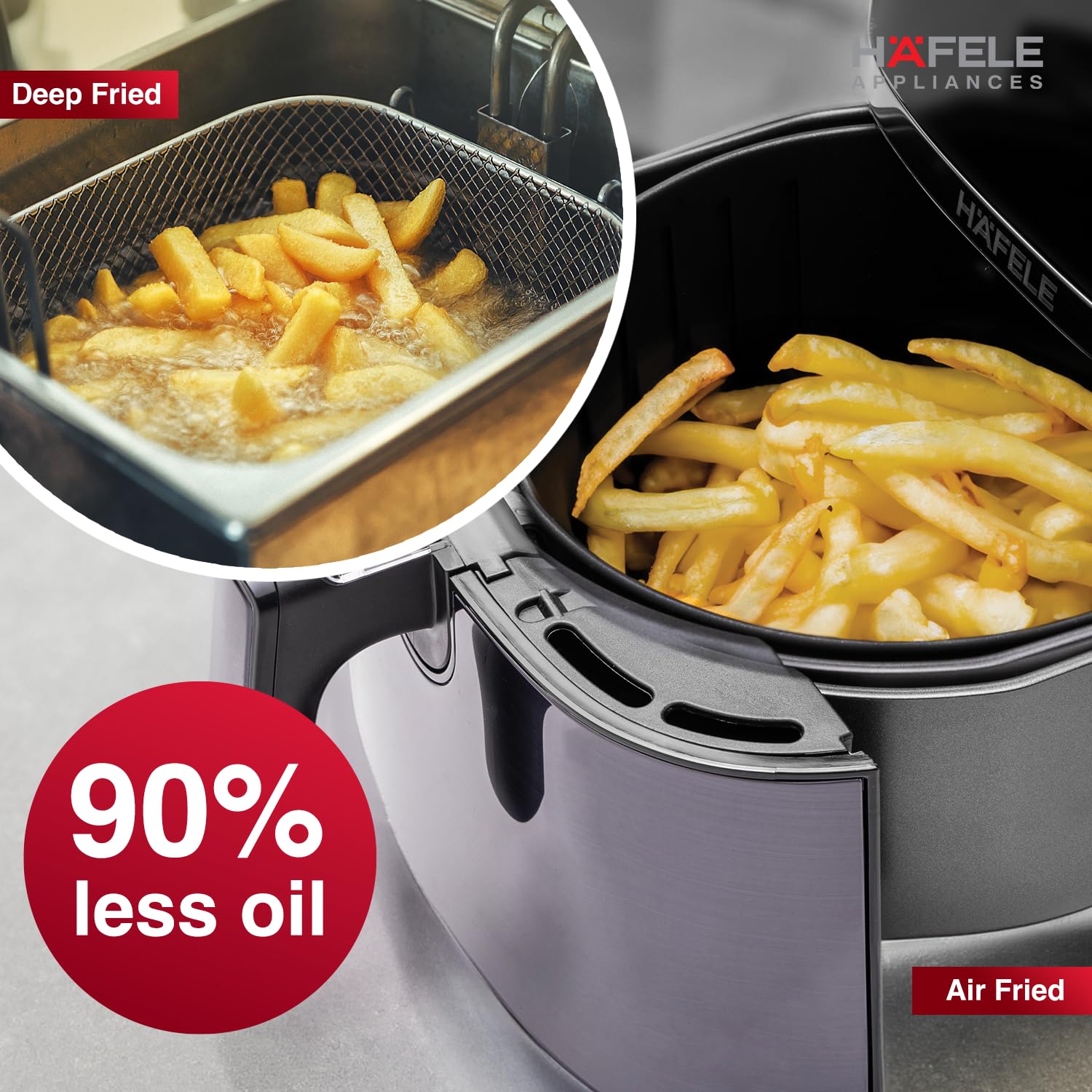 Home Kitchen & Home Appliances Kitchen Appliances Deep Fryers Hafele NOIL Lite 4.5L Digital Air Fryer with 360° Rapid Air Technology & Touch Panel with Colourful Icons for 8 -Preset Menus, Uses 90% Less Oil, Non-Stick Basket, 1500W (Brushed Steel)