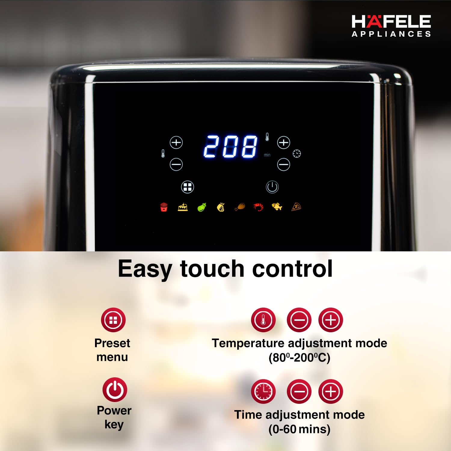 Hafele NOIL Lite 4.5L Digital Air Fryer with 360° Rapid Air Technology & Touch Panel with Colourful Icons for 8 -Preset Menus, Uses 90% Less Oil, Non-Stick Basket, 1500W (Brushed Steel)