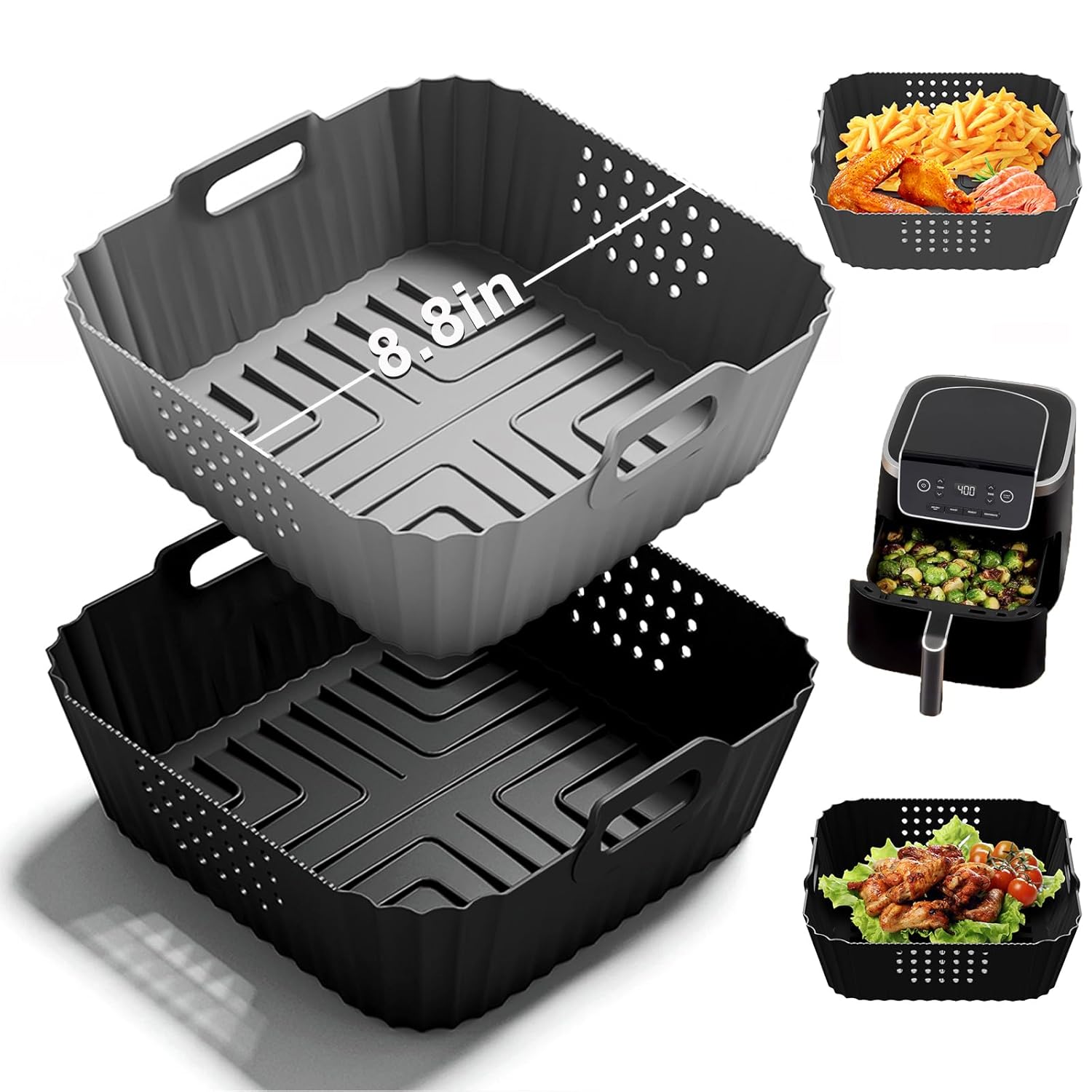 HOMELYLIFE Air Fryer Silicone Liners for Ninja AF141 AF142 5QT & AF181 6.5 QT AirFryer, Air Fryer Accessories for Cosori 5QT/6QT, 2 Pcs Reusable Square Liners for Instant 6Qt &Other 4.5-7QT AirFryer