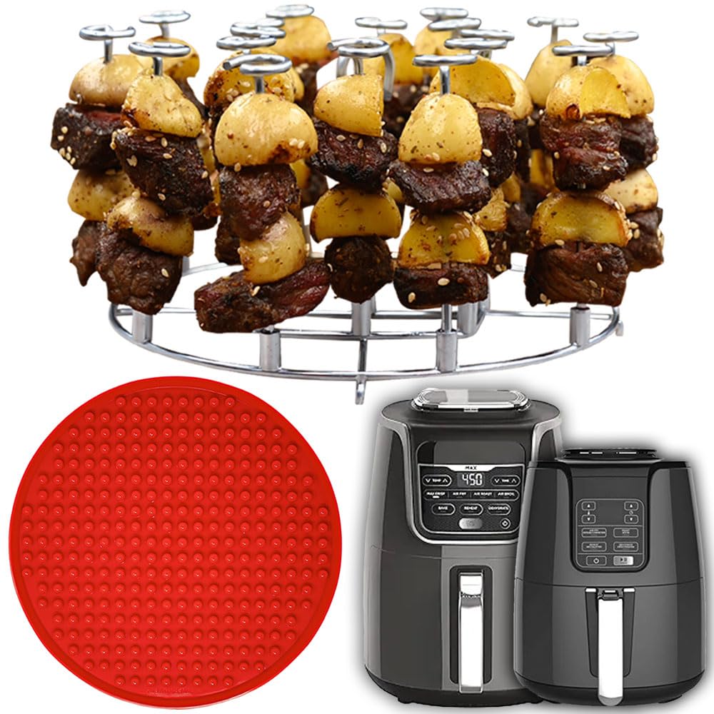 EASY TO USE AIR FRYER RACK – The set comes with 18 skewers and 1 handle in the middle, allowing you to easily place and remove the stand inside your air fryer basket.