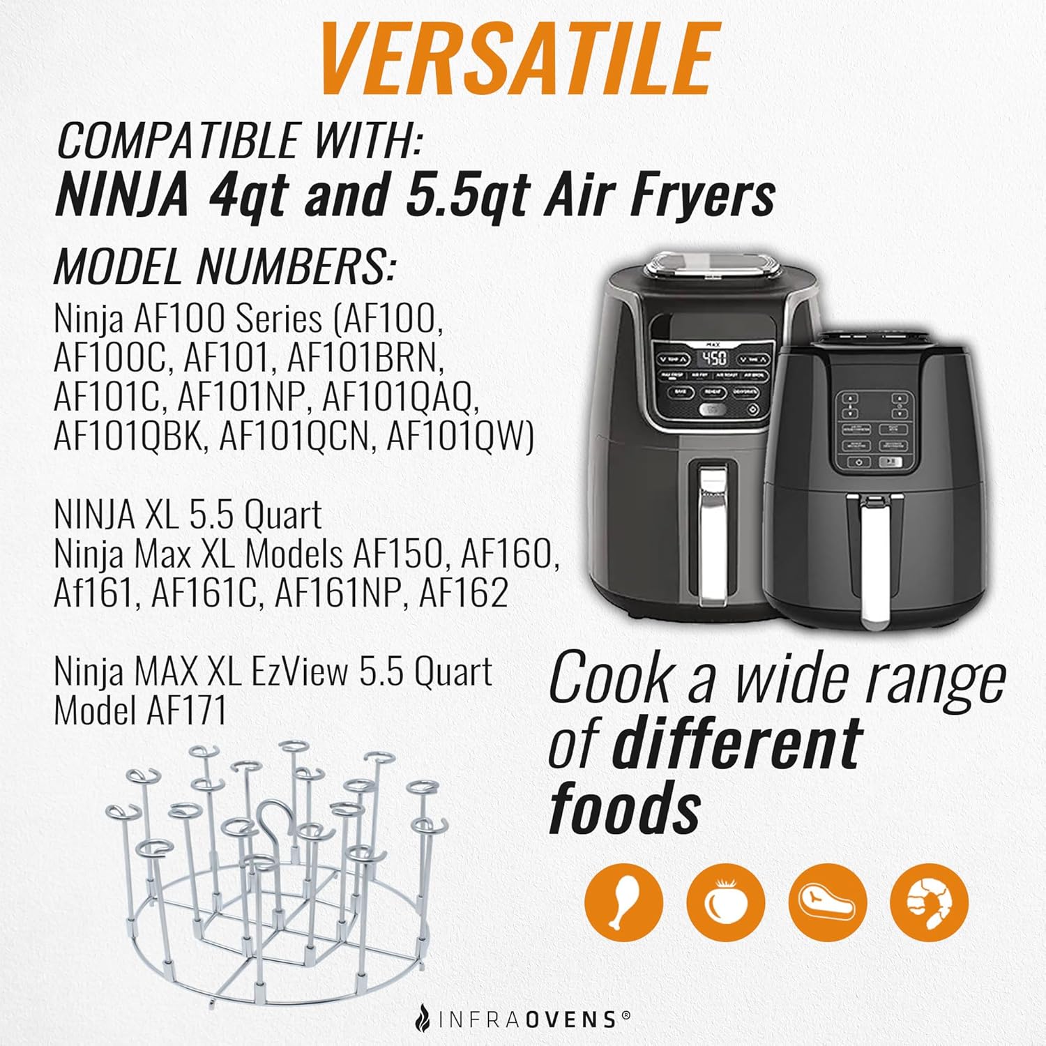COMPATIBLE WITH NINJA MAX XL Series – Models AF161, AF150, AF160, AF150AMZ, AF171. (Infraovens is not affiliated with, nor endorsed by, Ninja).