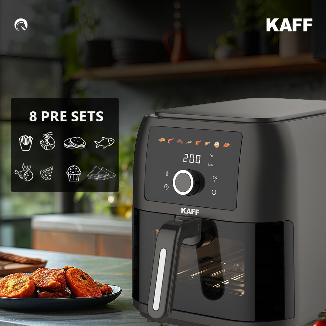 🔹 Premium Build: Steel & Glass Air Fryers – KAFF’s steel air fryer and glass air fryer models blend style and substance, offering lasting performance with a modern aesthetic.