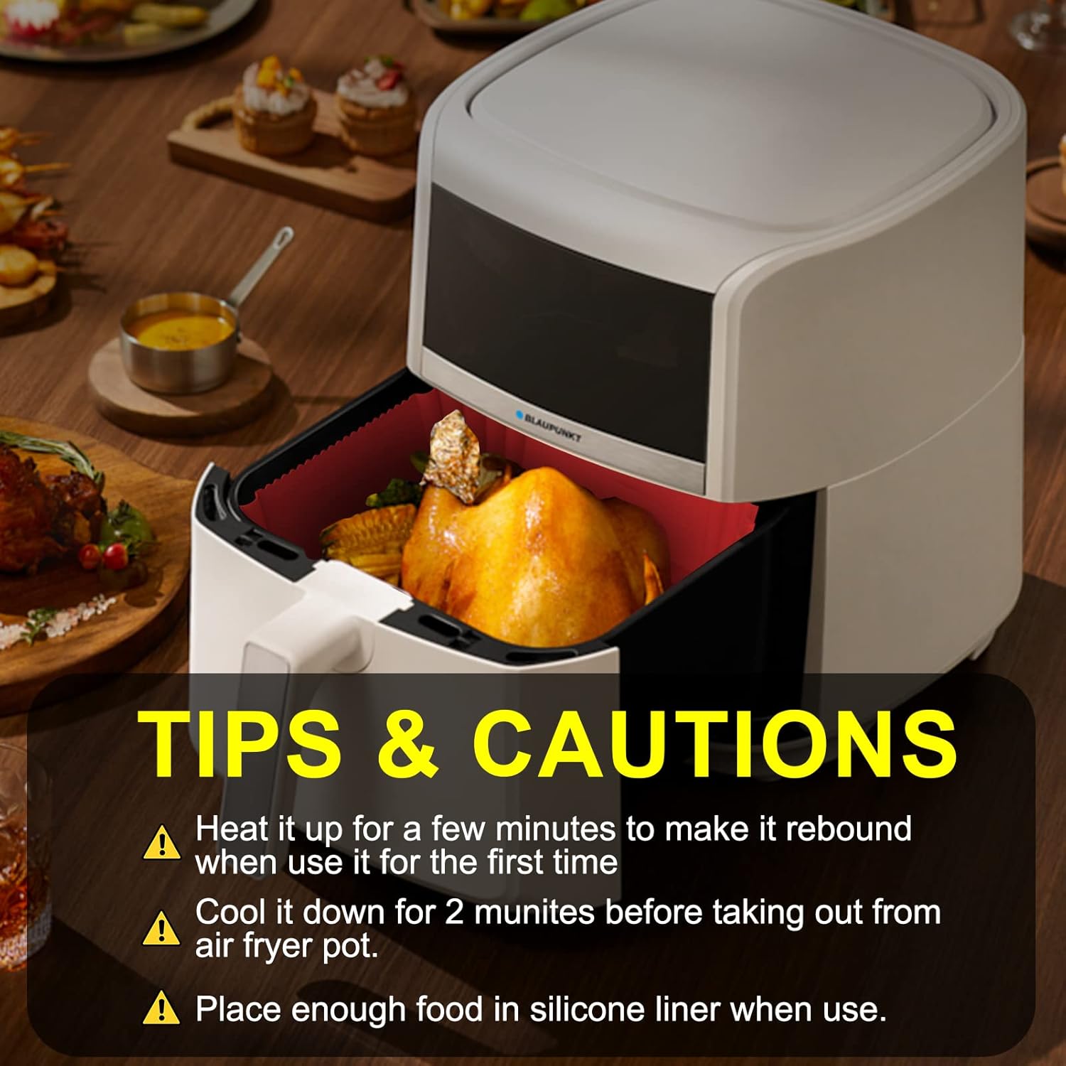 Reusable Food Grade Silicone Material, Durable, Heat Resistant and Dishwasher Safe. Keep Your Air Fryer Clean.