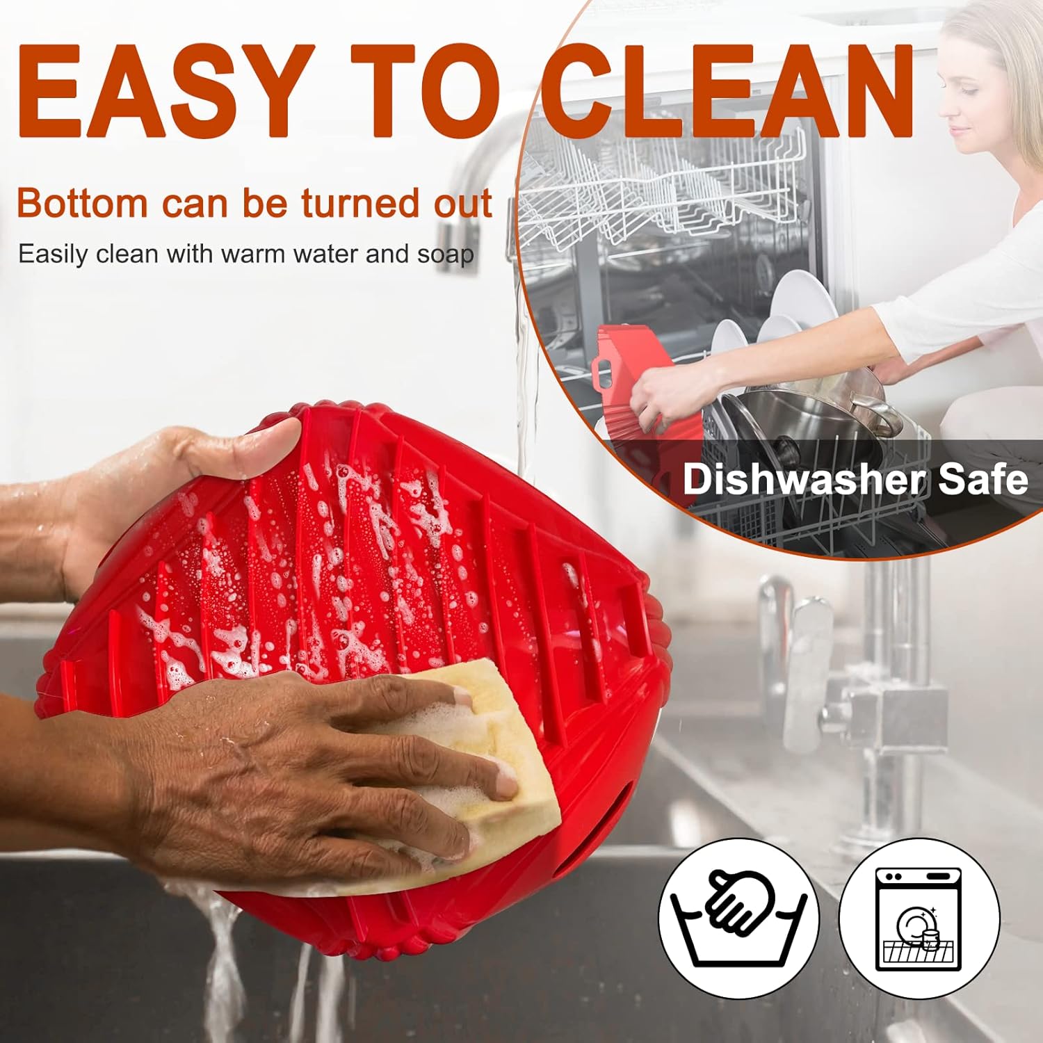 Dishwasher Safe Air Fryer Silicone Liners – Made of food grade silicone, this large air fryer silicone pot can be put into dishwasher for easy cleaning, saving your time and effort to scrubbing the microwave air fryer basket pot and the kitchen mess after cooking. Also easy to wash by flipping the inside out and wipe with a cleaning brush.