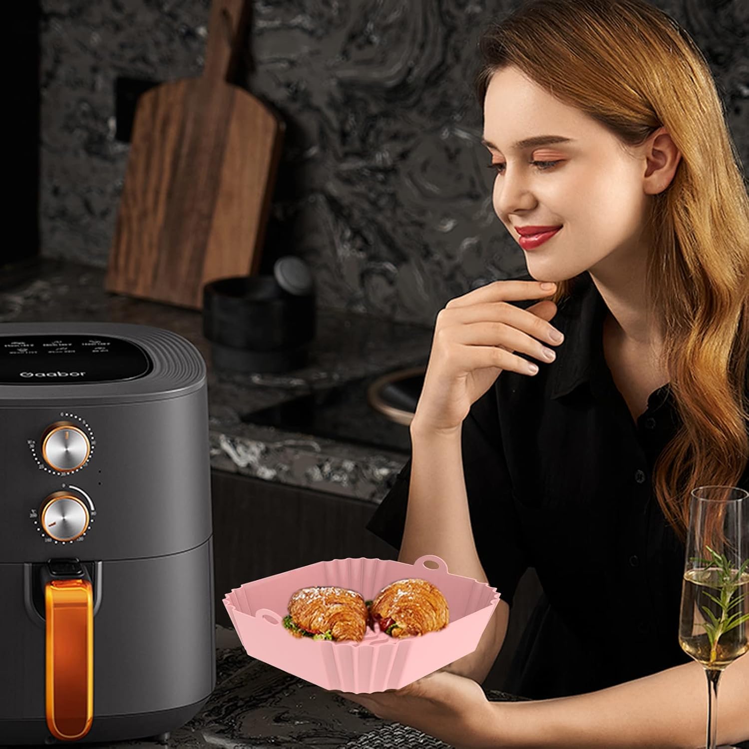 【PROLONG AIR FRYER’S LIFESPAN】 Our Air Fryer Liners Silicone shield your valuable appliance from stubborn stains and the need for vigorous scrubbing. By stopping oil, grease, grime, and food residues from building up, these Airfryer liners silicone keep your Fryers in pristine condition, free from damage. Bid farewell to the inconvenience and expense of frequent Replacements, and instead relish in prolonged usage and peace of mind with your trusted Air Fryer.